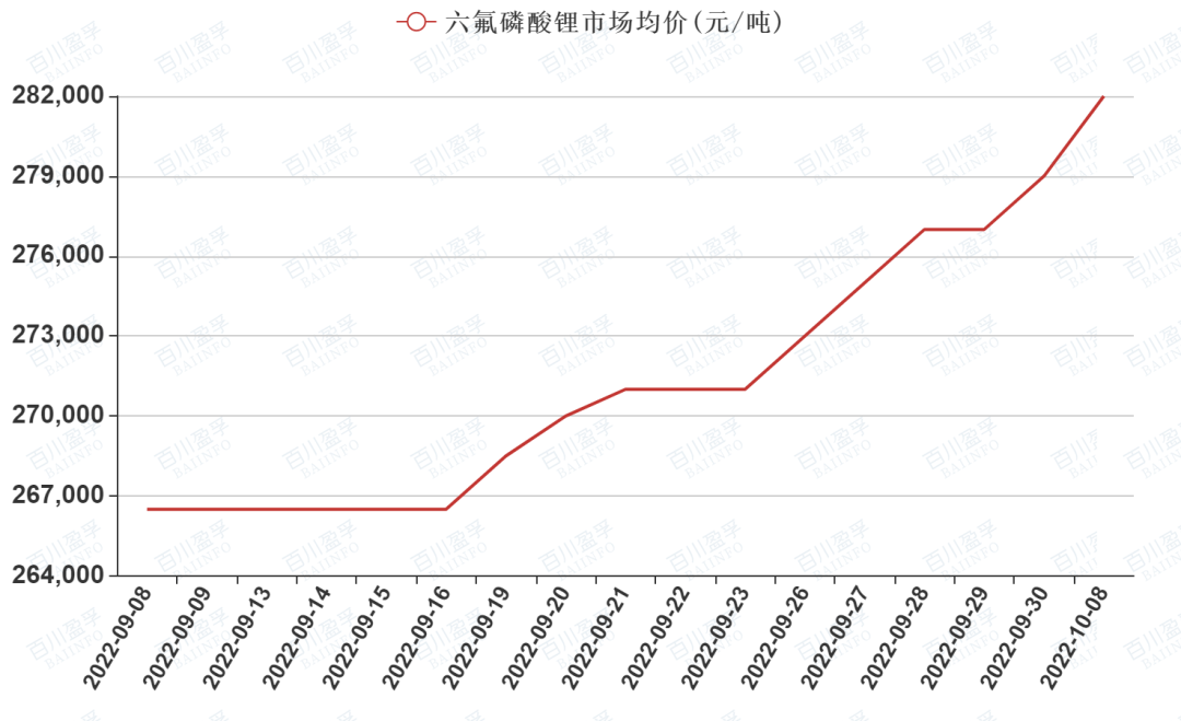 就今日六氟磷酸锂市场来看,市场情况与预期相符。由于原料端价格整体偏高,六氟磷酸锂企业采购成本有所增加,六氟磷酸锂价格有所上调。目前六氟磷酸锂龙头企业装置正常运行,产量稳步提升,加之新进企业正式进入市场,六氟磷酸锂市场供应量有所增加。下游电解液按需采购六氟磷酸锂,市场需求量小幅增加,六氟磷酸锂企业看涨意愿仍存。